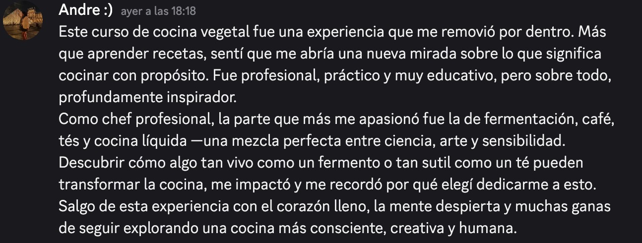 Te permite vivir en coherencia, fusionando tu vida personal y profesional con los valores en los que crees: compasión hacia los animales, respeto por la naturaleza, amor por la salud y el bienestar de las personas. Tu cocina se convierte en una expresión de conciencia, no solo de técnica.